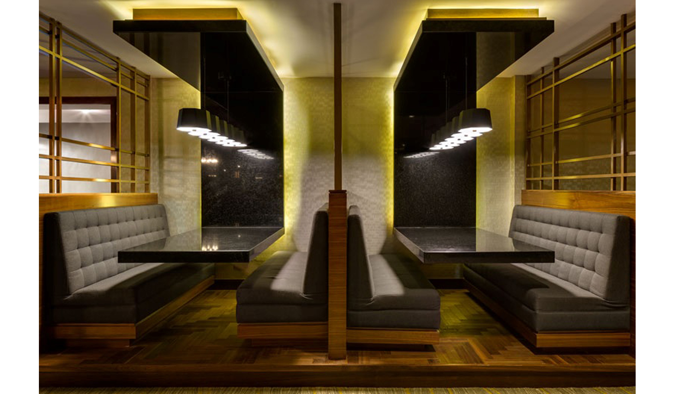 – En el área de restaurante se integran mesas y confortables booths creando un ambiente interesante y refinado.