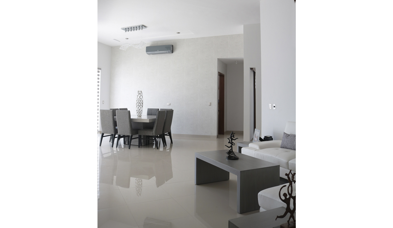 – El amplio espacio interior sala – comedor – cocina, se encuentra integrado, teniendo vista al jardín principal.