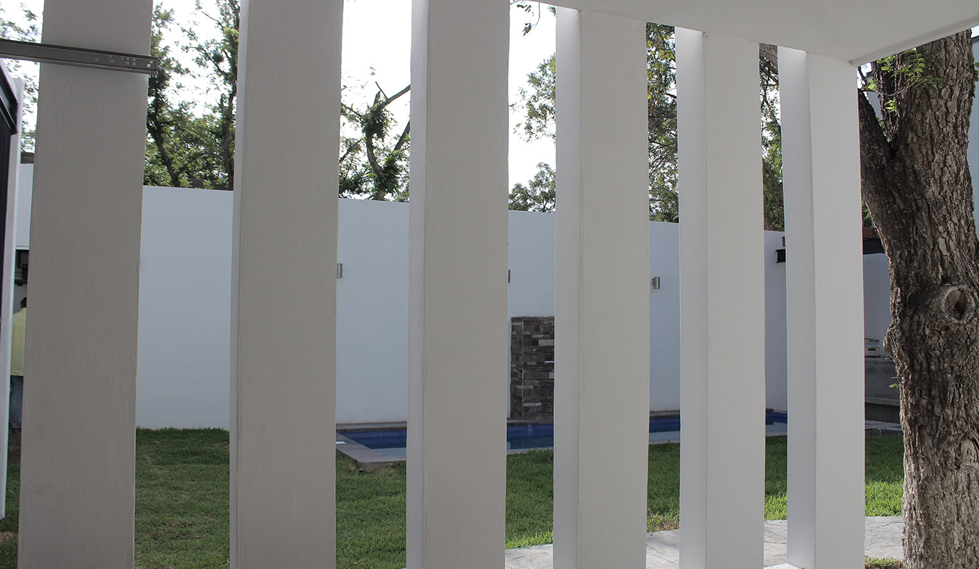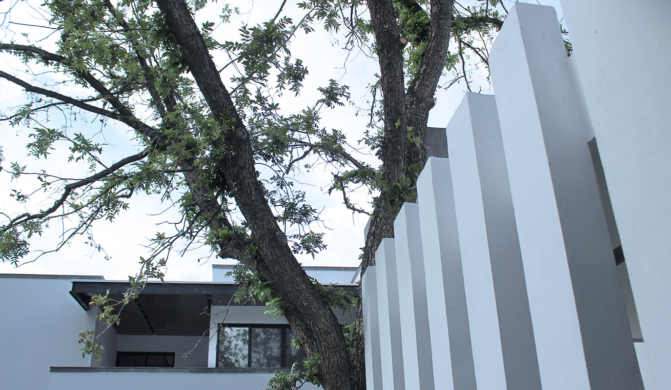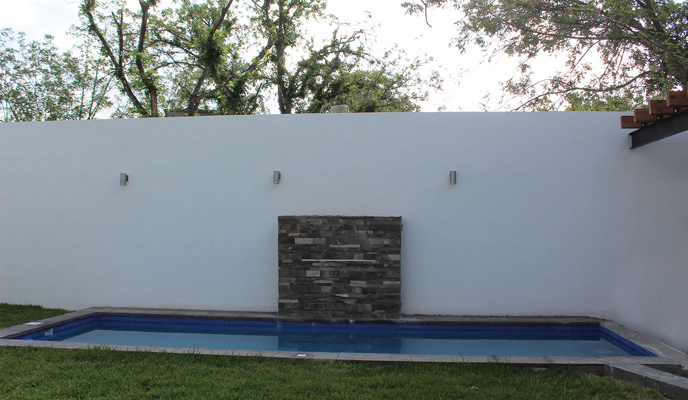 – En un lugar entre grandes nogales se ubica la vivienda de Troje Santo Tomás, ubicada en un terreno irregular, el proyecto sitúa la casa al fondo del terreno, para de esta manera dejar el área social al frente; creando un espacio de confort con una alberca separada del área de asador por un bar que integra ambos elementos.