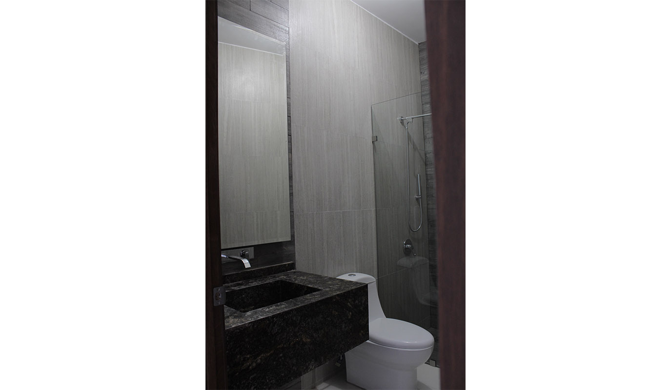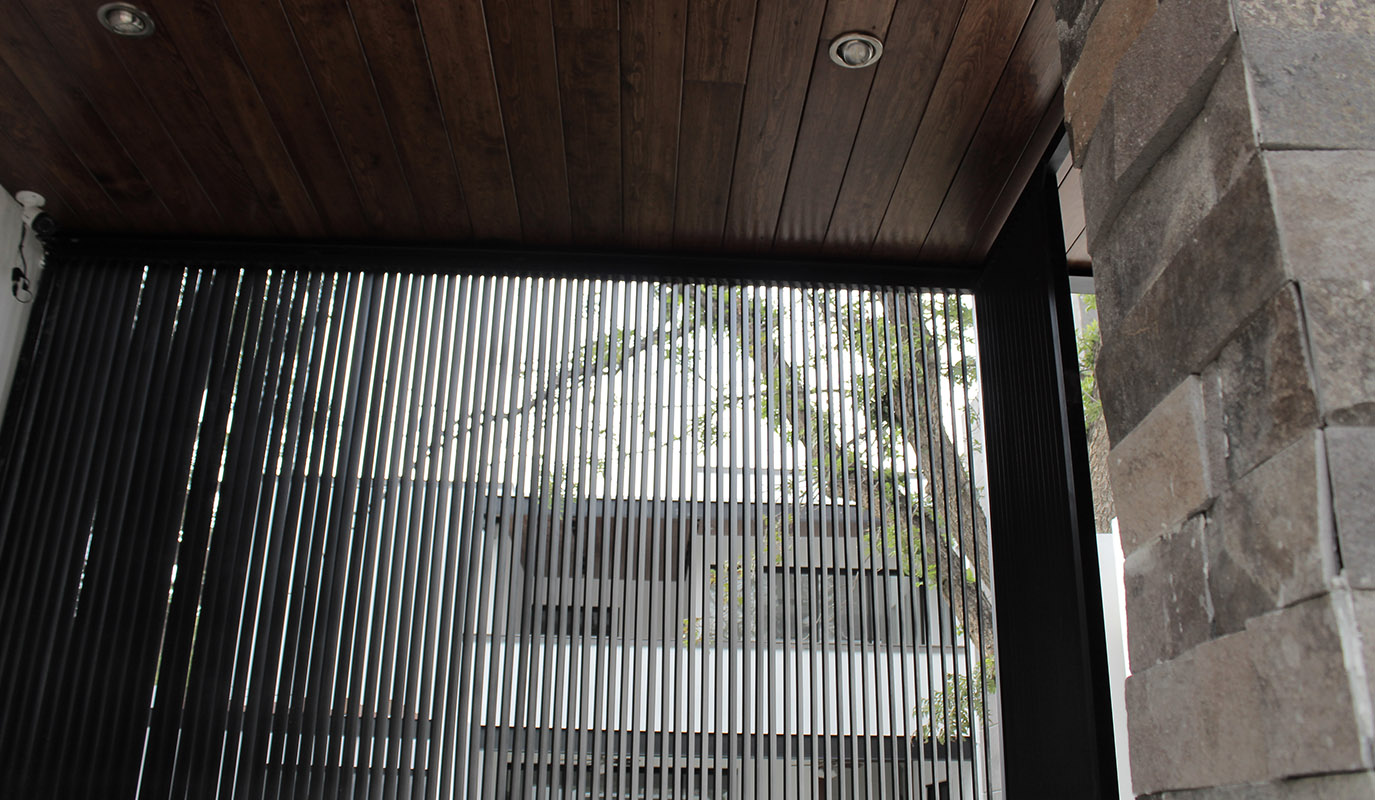 – El marco de acceso principal a la casa es una terraza amplia que conecta al área social interior por medio un sistema de puertas de vidrio totalmente retráctiles, integrando el exterior a los espacios abiertos de sala, comedor y cocina.